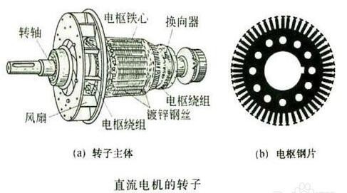 轉子部分的電樞鐵芯是主磁路的組成部分,電樞繞組由一定數目的電樞線圈按照一定的規律鏈接組成,是微型直流電機的電路部分,產生感生電動勢,進行機電能量的轉換。而換向器主在直流發電機中主要起整流的作用,而在電動機中起的是逆變作用。